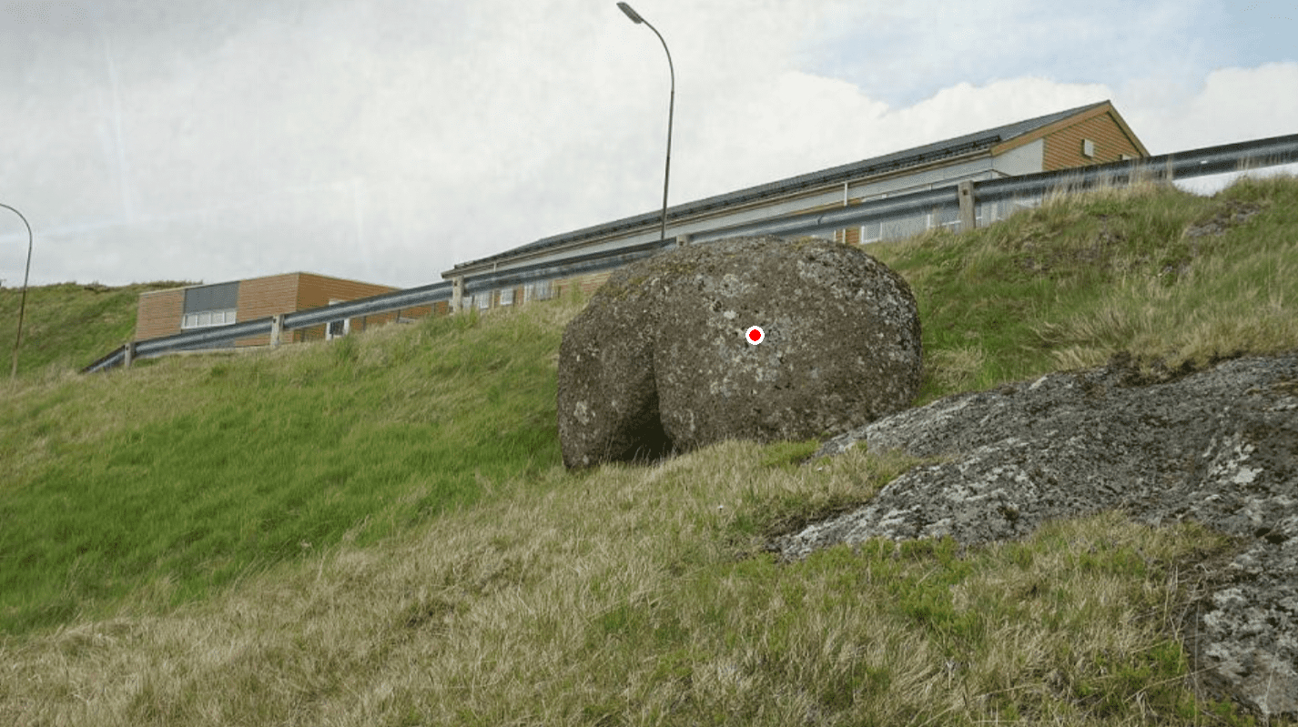Bunkans eistur Í vegjaðaranum ávegis niðan á Svangaskarð, niðanfyri barnagarðin, standa hesir báðir steinarnir. Teir verða nevndir Bunkans eistur. Gamalt er, at ein søga um ein risa, sum nevndist Bunkan, er upprunin til heiti á steinunum. Risin var á veg eystureftir og skuldi taka eitt stórt gleiv líka úr Kolbeinagjógv og eystur á Vatnfellu, sum er fjallið eystan fyri Toftavatn. Men tíverri fyri risan gjørdist gleivið so langt, at hann skrædnaði í greipingini, eistrini losnaðu og duttu niður í Svangaskarð, og har liggja tey enn tann dag í dag. Ein onnur søga um hesar steinarnar er frá teirri tíðini, tá Gulak Jacobsen var prestur á Nesi. Sagt verður um Gulak, at hann var sera skemtingarsamur maður, og hann hevur uttan iva vitað um navnið á hesum báðum steinunum. Ein dagin er prestur á vitjan Inni í Gerði. Bunkans eisti eru í haganum beint oman fyri húsini Inni í Gerði. Tá Gulak kemur upp á trappusteinin, stendur húsfrúgvin Inni í Gerði fyri honum. Áðrenn prestur fer innar, snarar hann sær á, hyggur niðan í hagan og sigur: Tygum, hasir báðir steinarnir har uppi, hava teir eitt navn? Jú, svarar hon, víst hava teir navn. Meira segði hon ikki.