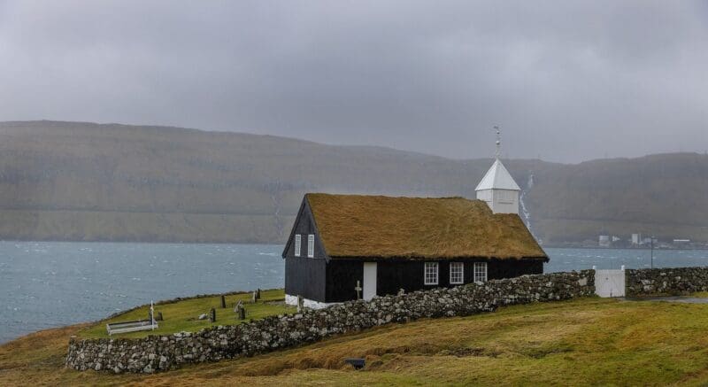Í einum lítlum kirjugarði vestarliga í gomlu bygdini á einum tanga út móti Kaldbaksfirði liggur tann vakra, vælhildna kirkjan bygd í árinum 1835.