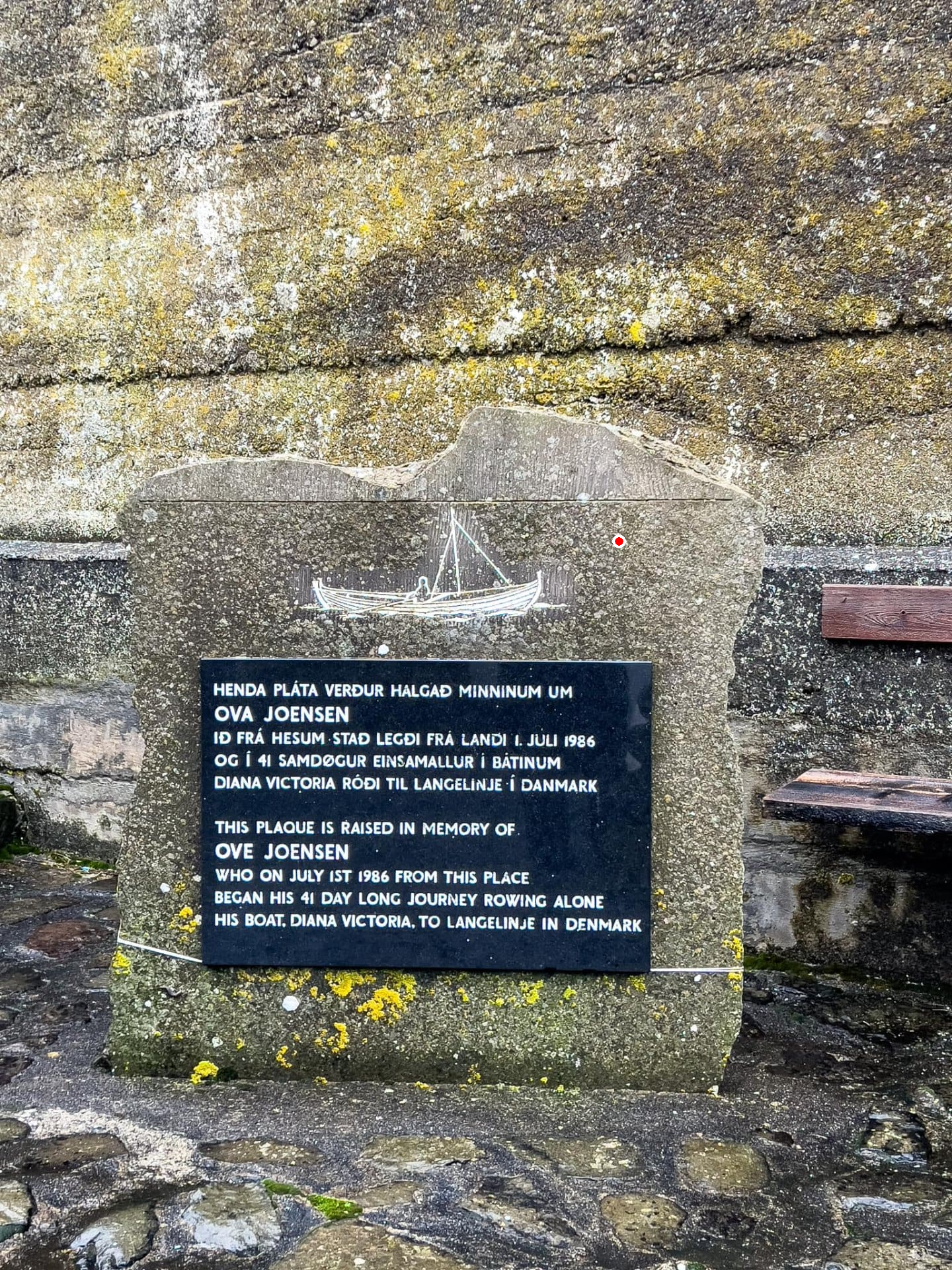 Minnispláta um Ova Joensen. Eigari: Irdi Jacobsen
