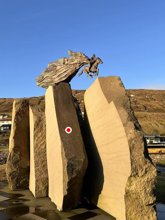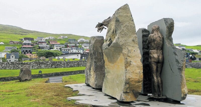 Áðrenn stóri minnisvarðin varð settur upp í Sandavági, stóð hann uppi her hjá okkum í einar tvær vikur. Umframt grótið, sum fyllir nógv við minnisvarðan, er eisini flotta huldukonan, sum listamaðurin hegnisliga gjørdi. Tað var áhugavert at hava Hans Paula Olsen á virkinum, sigur stjórin.