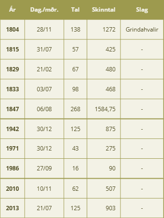 Víkin er góðkend sum hvalvág, og er grind hildin til á sandinum 10 ferðir: