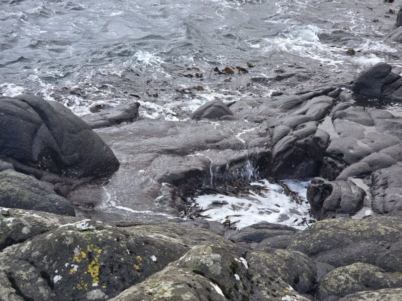 Stendur út úr, streymurin gongur í klettin har.